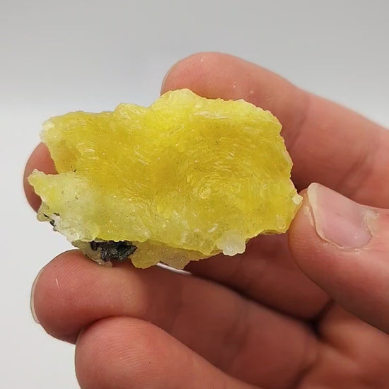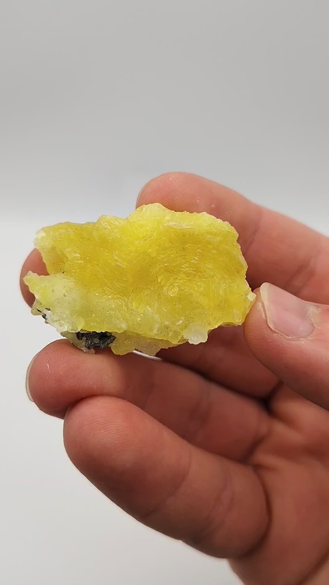 Deep yellow radiating growth of brucite crystals. Minor matrix attached