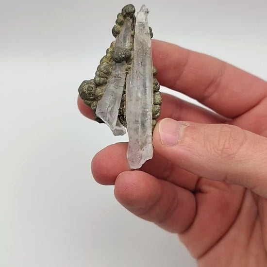 Botryoidal marcasite on Quartz crystals